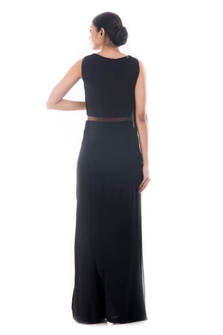 Black cape kurta featuring cutdana and sequin embroidery with a round neckline. Paired with a palazzo, both made from georgette with an attached tafetta lining.