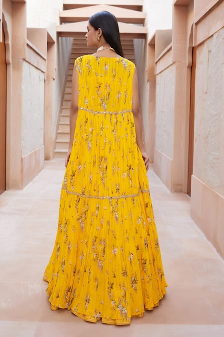 Yellow Georgette Magnolia Jacket Open Sofia Printed Lehenga Set