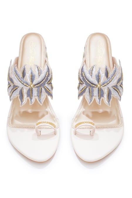 Buy_Sole House_Cream Embroidery Block Heels _Online_at_Aza_Fashions