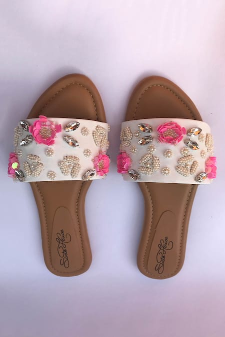 Buy_Sole House_White Embroidered Floral Crystal Sliders _Online_at_Aza_Fashions