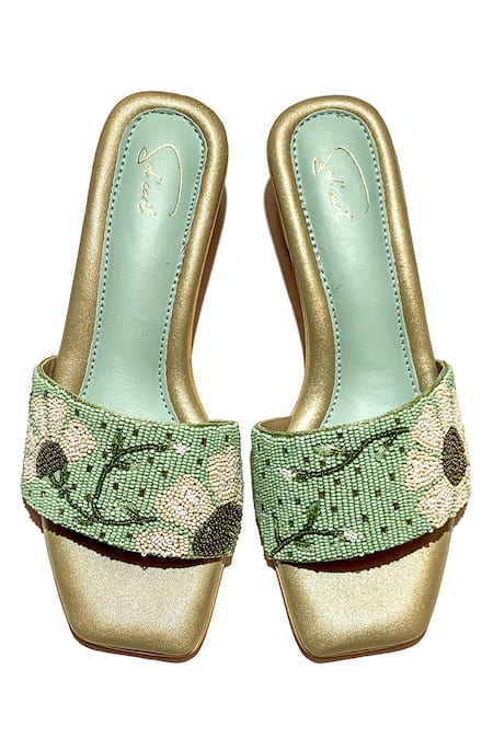 Buy_Soleart_Green Bead Mint Embroidered Heels_Online_at_Aza_Fashions