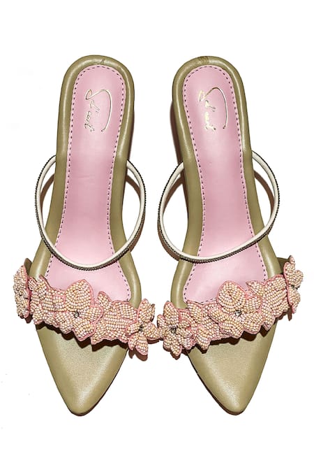 3D flower bead embroidery, Single jeweled strap, Pointed toe detailing