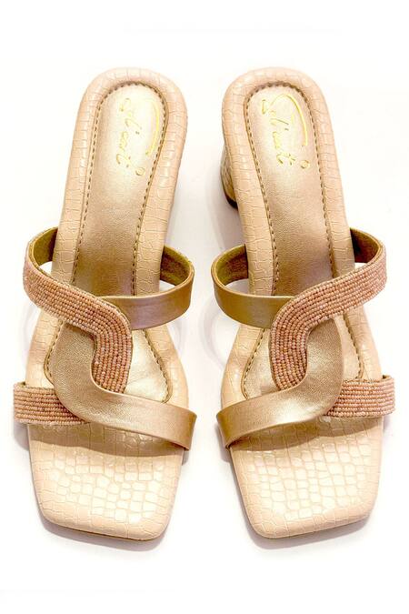 Color block bead embroidered interlinked straps, Square toe design, Block heel for stability