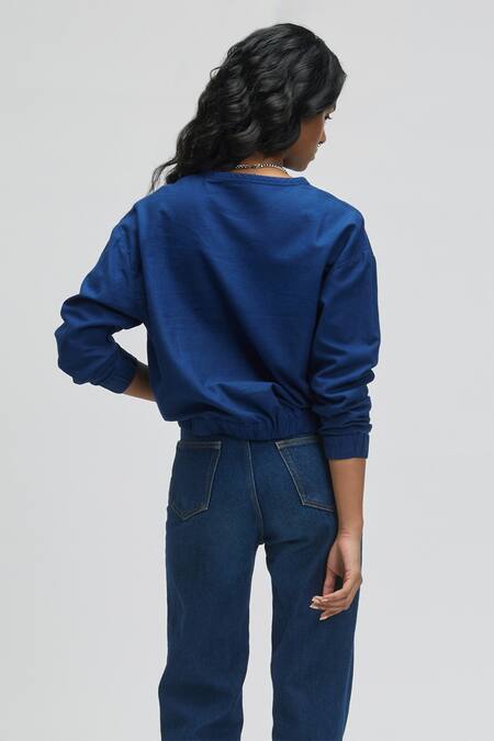 Shop_Terra Luna_Blue 100% Oxford Handloom Cotton Round Solid Sweatshirt_at_Aza_Fashions