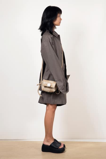 Mouse grey cotton poplin tent shorts with concealed closure.