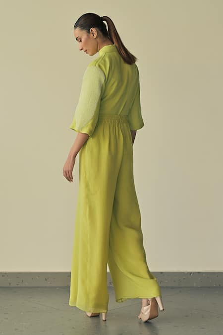 Buy_Somya Goyal_Green Organza Embroidered Pvc Loop Collar Crystal Double Layer Shirt_at_Aza_Fashions