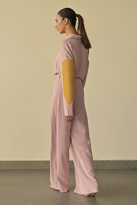 Pink 95% Microfibre Faille Embroidered Pvc Loop Hand-textured Panelled Shirt