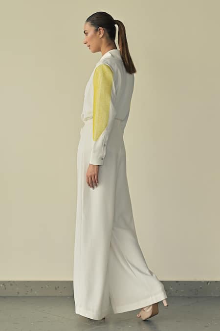 White shirt featuring PVC loop embroidery on full sleeves and a collar