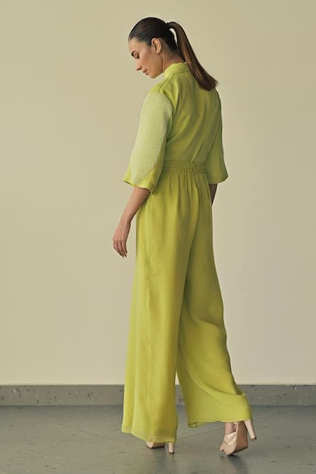 Buy_Somya Goyal_Green Super Organza Solid Parallel Flared Trouser_Online_at_Aza_Fashions