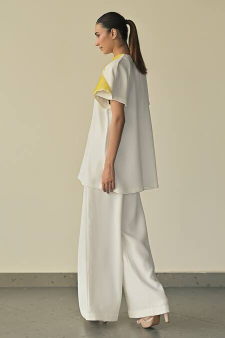 Buy_Somya Goyal_White Microfibre Faille- 95% Solid Stella High-waisted Flared Trouser_at_Aza_Fashions