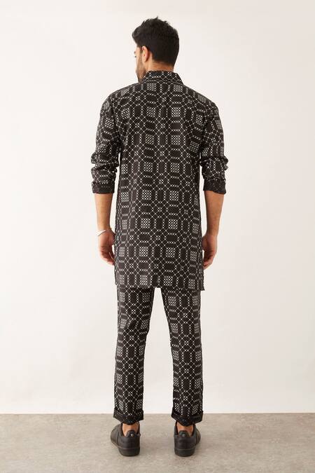 Black Linen Aazz Balance Print Shirt And Trouser Set