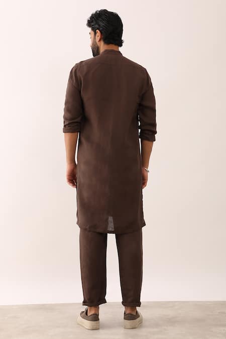 Buy_Son Of A Noble Snob_Brown 100% Linen Plain Alok Straight Kurta Set _Online_at_Aza_Fashions