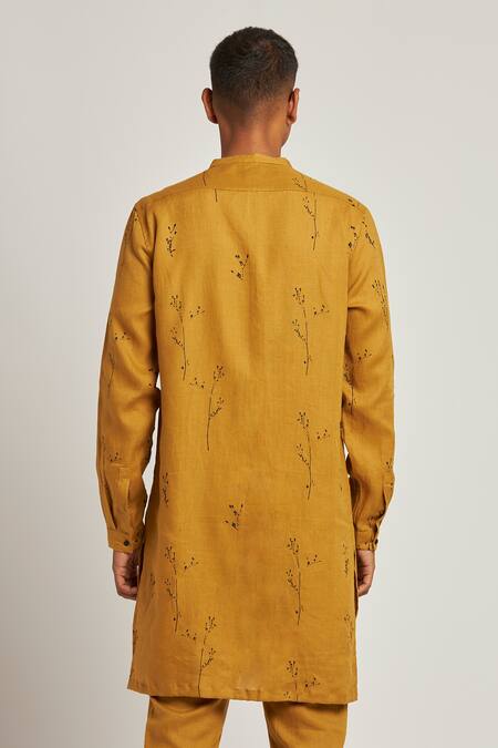 Yellow 100% Linen Botany Print Gurung Kurta