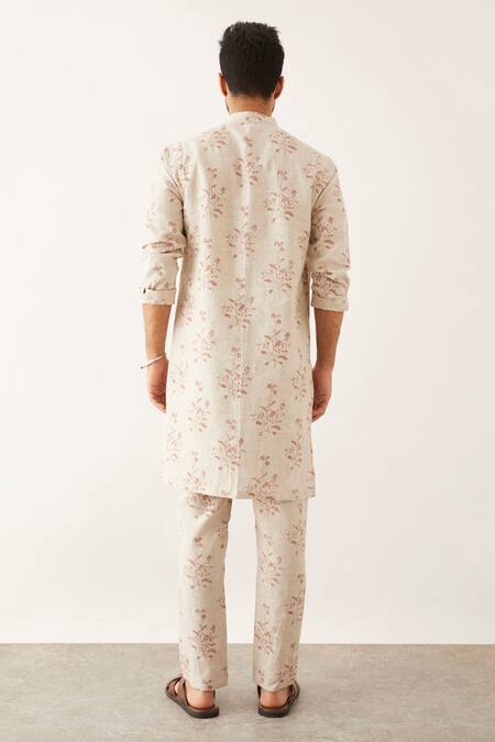 Ivory Linen Halles Catchfly Printed Kurta Set