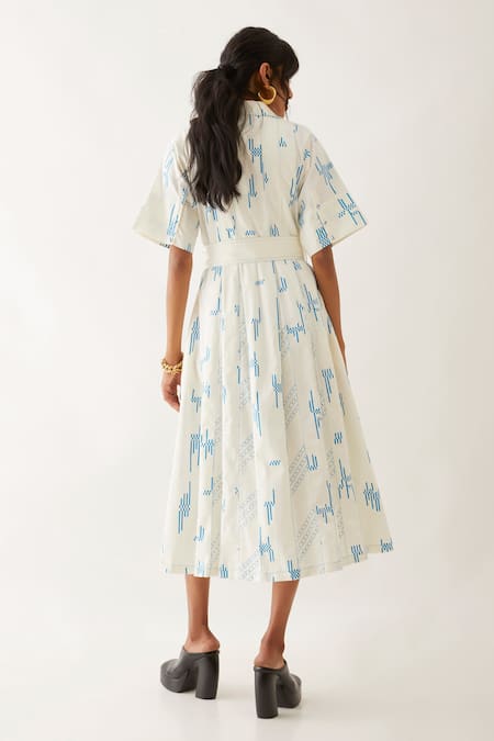 Off White Cotton Satin Print Carnival Collared Miyoko Dress