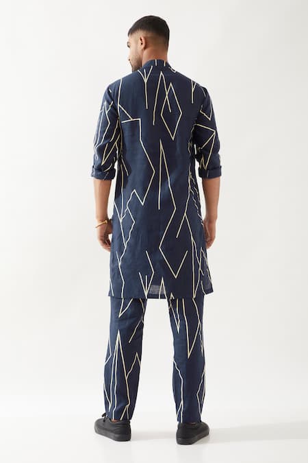 Navy slim fit kurta featuring a mandarin collar and zipper detail