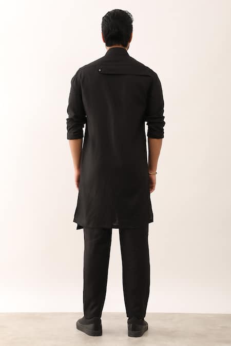 Black 100% Linen Solid Yatin Long Shirt With Pant