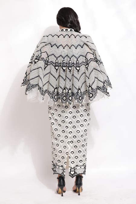 Buy_Sonali Gupta_White 25% Silk Hand Embroidered Dori And Pearl Work Jacket Skirt Set  _Online_at_Aza_Fashions