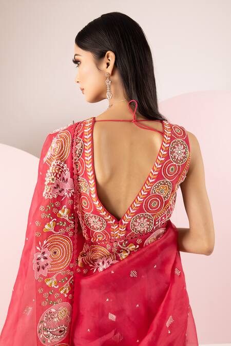 Red Organza, Net Sequins, Pearls, Cut Work, And Resham Saree With Blouse