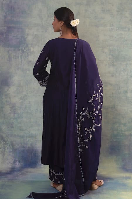 Blue Organza, Silk Sequins, Beads, Embroidery Daisy Garden Anarkali Palazzo Set
