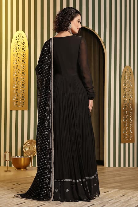 Black Organza, Georgette Embroidery, Chikankari Anarkali Set With Dupatta