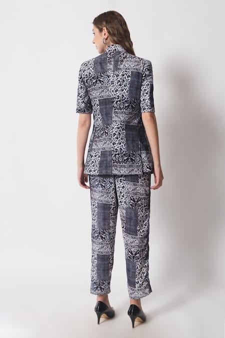 Black Velvet Chains Blossom Print Blazer And Pant Set