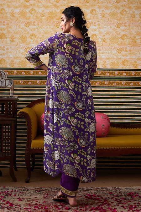 Purple Crepe, Organza Sequins, Mehr Floral Print Cape Draped Skirt Set
