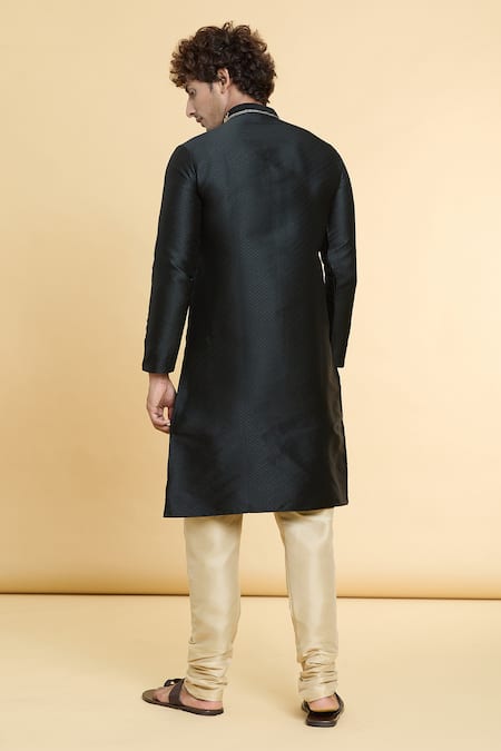Black Jacquard, Silk Zari Embroidered Placket Kurta
