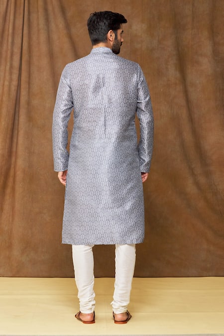Buy_Arihant Rai Sinha_Grey Jacquard, Silk Geometric Pattern Kurta _Online_at_Aza_Fashions