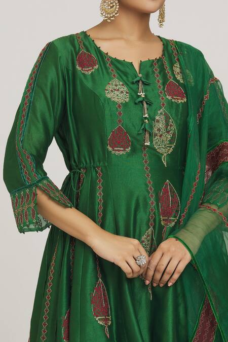 Emerald Green Silk, Persian Embellished Asymmetric Anarkali Sharara Set