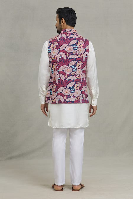 Pink Rayon Embroidery Botanical Print Nehru Jacket
