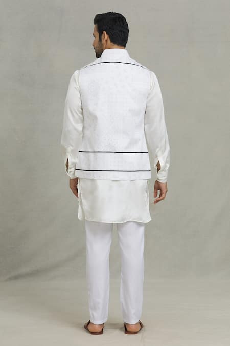 White Cotton Embroidery Geometric Print Nehru Jacket