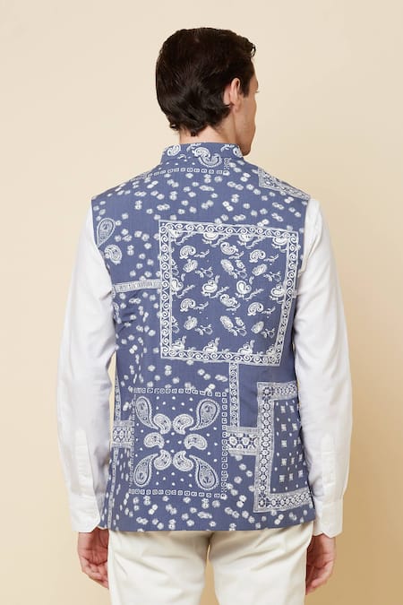 Blue Cotton, Polyester Paisley Print Bundi Jacket