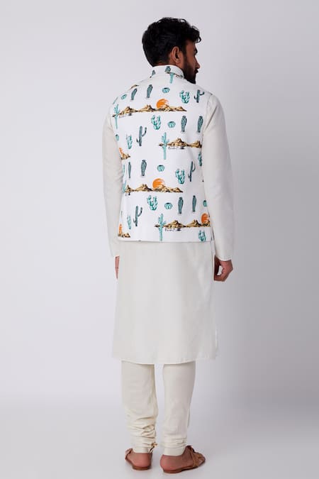 White bundi with all over catcus printed detail and welt pockets.