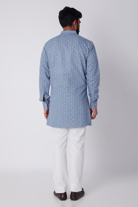 Blue Cotton Printed Kurta