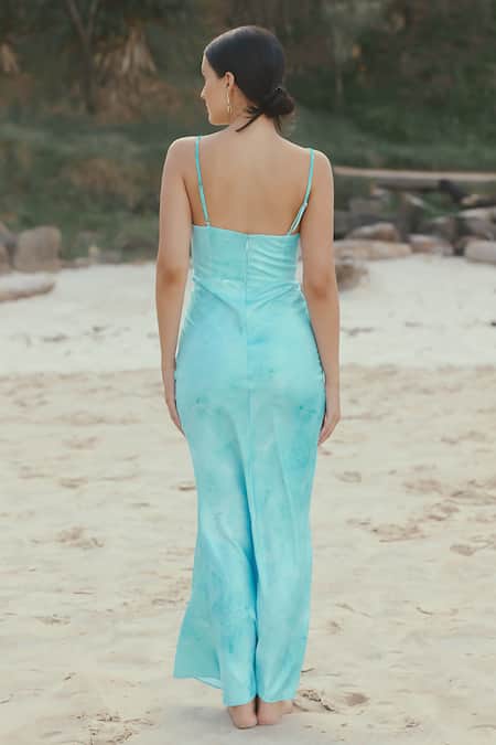 Aqua green marble effect bodycon maxi dress featuring a sweetheart neckline and sleeveless design