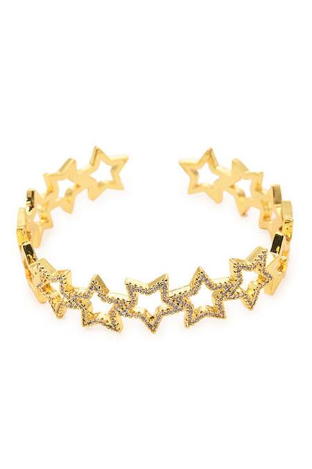 Buy_The Jewel Factor_Gold Plated Stone Star Shape Embellished Bangle_at_Aza_Fashions