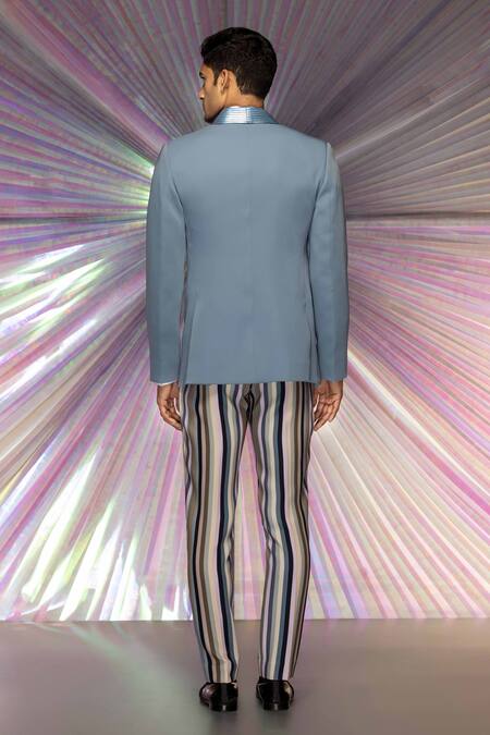 Buy_Amit Aggarwal_Grey Satin Crepe Striped Starburst Metallic Tuxedo And Pant Set_Online_at_Aza_Fashions