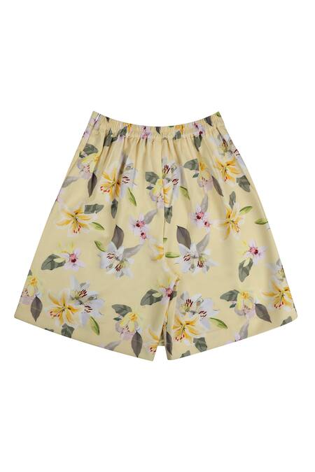 Yellow Cotton Floral Pattern Skort