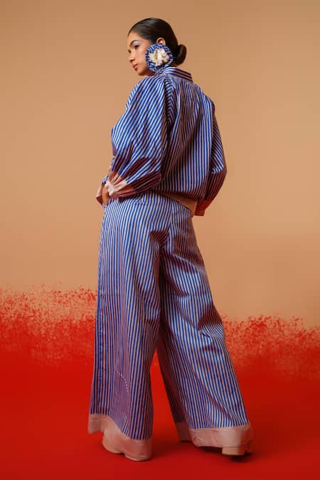 Blue Cotton Collared Striped Designer Shirt