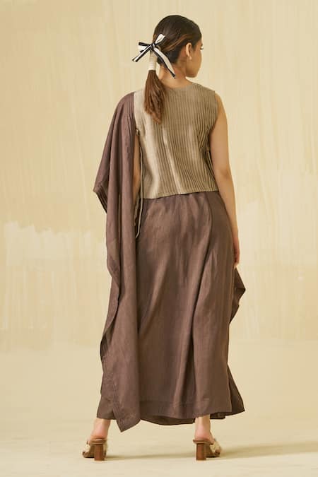 Beige Mysore Silk Pintucks Notched Bluebird Blouse