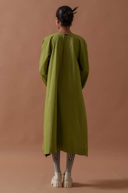 Buy_Stoique_Green Handloom Cotton Embroidery Round Neck Floral Hand Block Print Dress _Online_at_Aza_Fashions