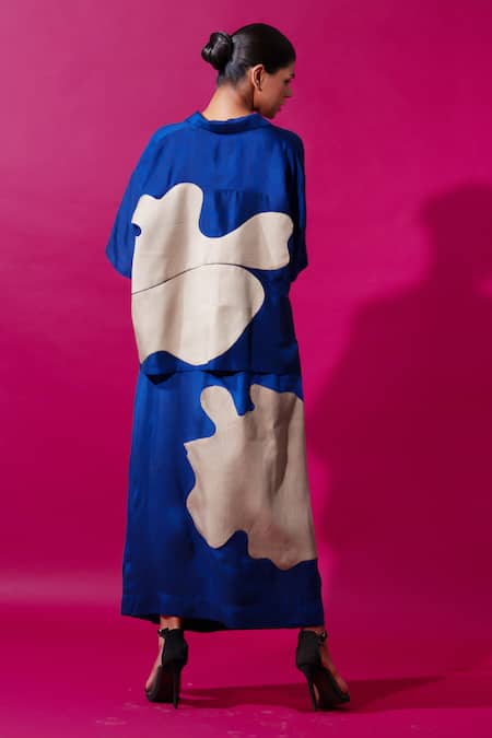 Buy_Stoique_Blue Muslin Applique Collared Gunpowder Embroidered Oversized Shirt _at_Aza_Fashions