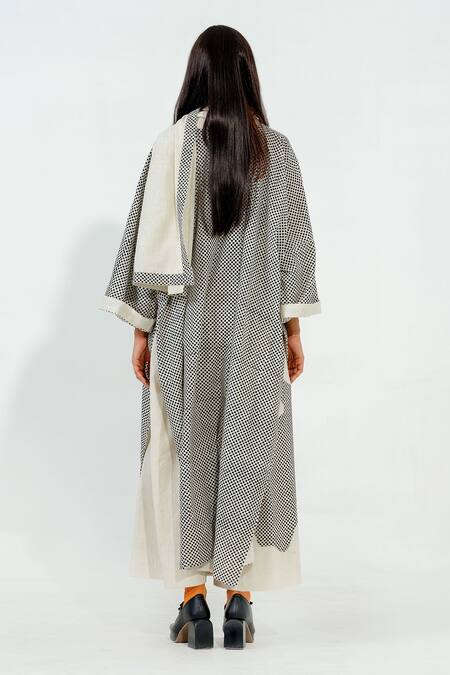 Off White Cotton, Muslin Embroidery V-neck Polka Dot Woven Dress