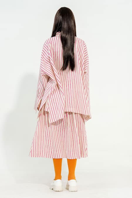 Shop_Stoique_Off White Cotton Collared Stripe Block Print Shirt _at_Aza_Fashions