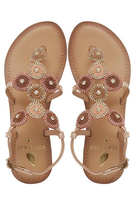 Buy_Sole Fry_Gold Beads, Diamonds Stone And Beaded Back Strap Sandals_Online_at_Aza_Fashions