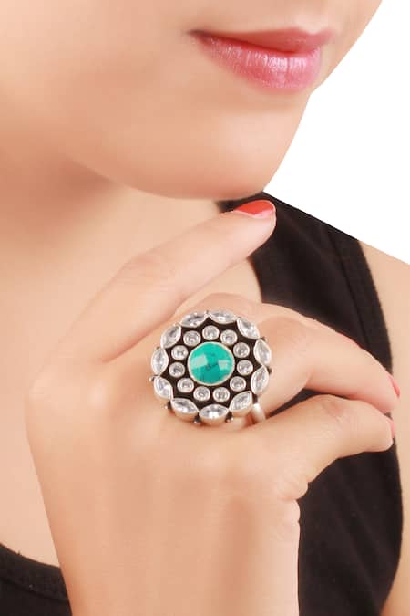 Blue Stones Embedded Oversized Finger Ring