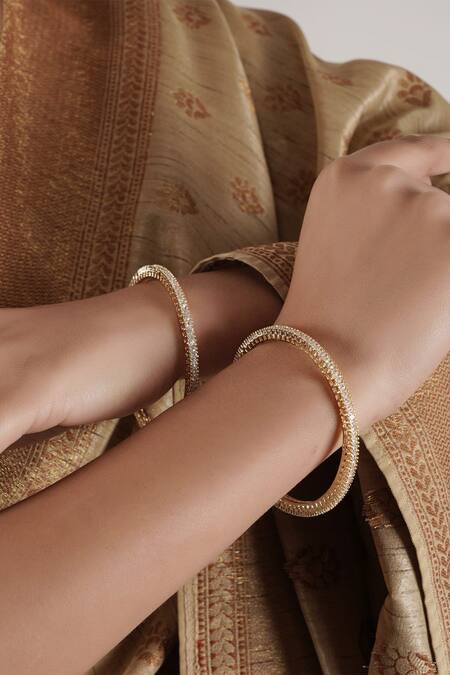 Buy_Smars Jewelry_Gold Plated Stone Embellished Bangles - Set Of 2_at_Aza_Fashions