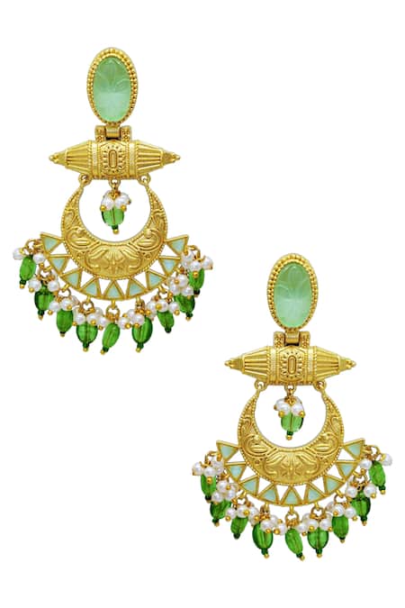 Buy_BelsI'S_Gold Plated Stone And Beads Embellished Chandbalis_at_Aza_Fashions