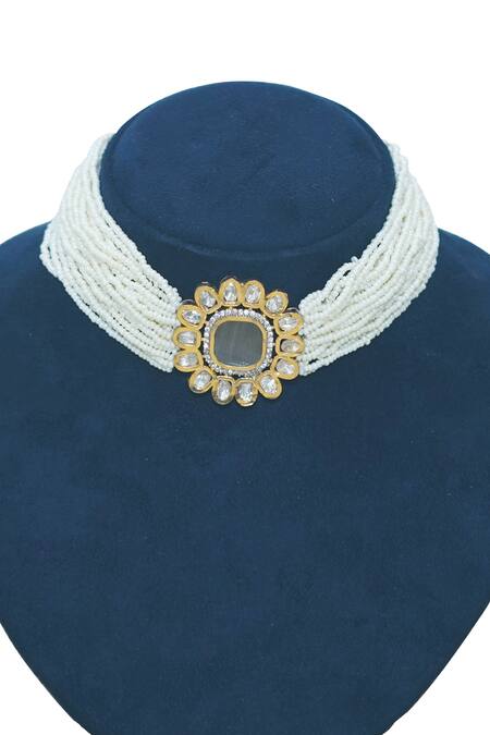Grey Stone And Pearls Embellished Choker Set